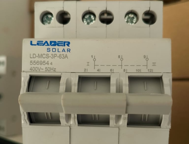 A device for manually switching between two independent power sources, like the main grid and a backup generator