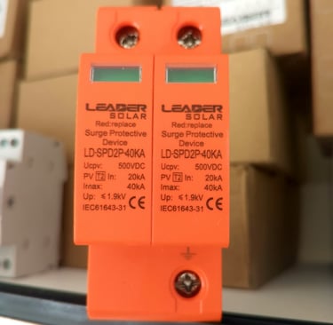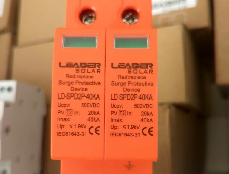 2 pole SPD (Surge Protective Device) with a 40kA (kiloampere) rating and a 500V (volt) rating